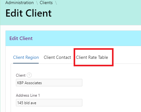 4. Under the title Edit Client, click the Client Rate Table tab