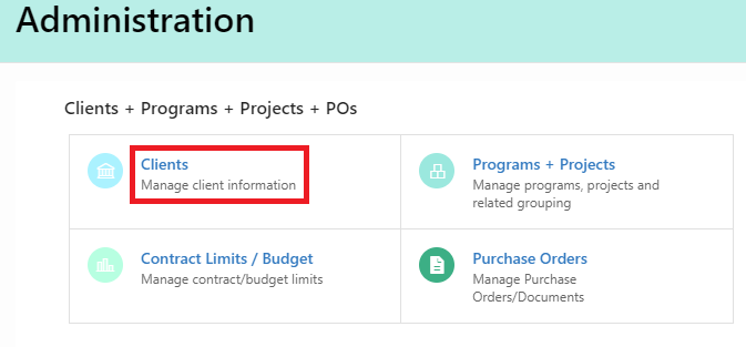 2. Within the Administration page, click Clients